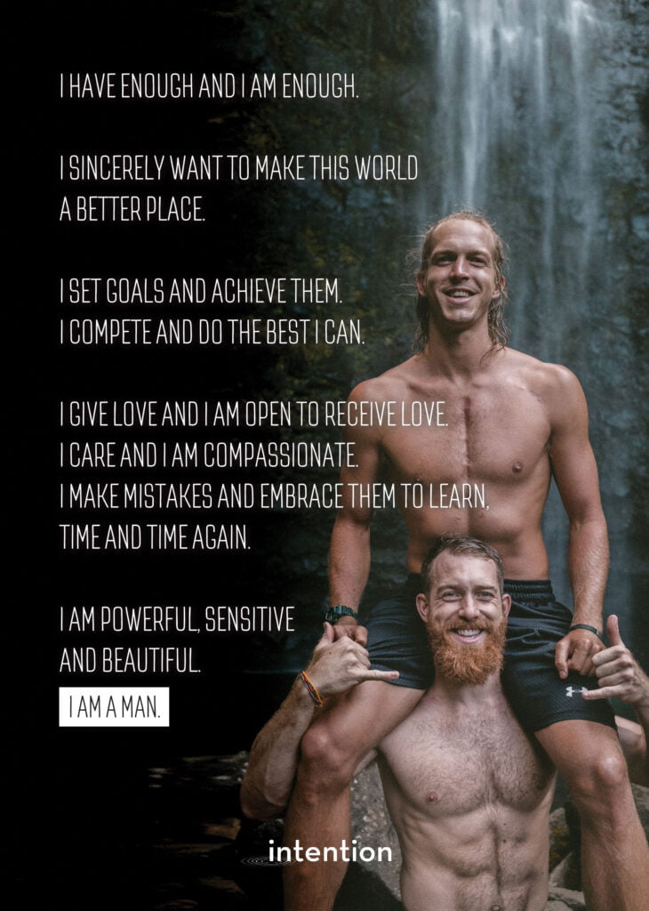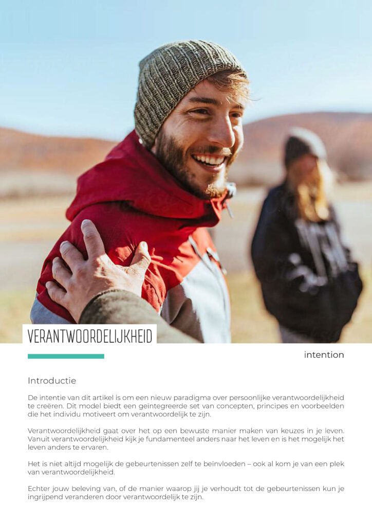 Een ansichtkaart, flyer en poster voor de mannencirkel van Intention. De eerste pagina van een artikel (pdf) over Verantwoordelijkheid.